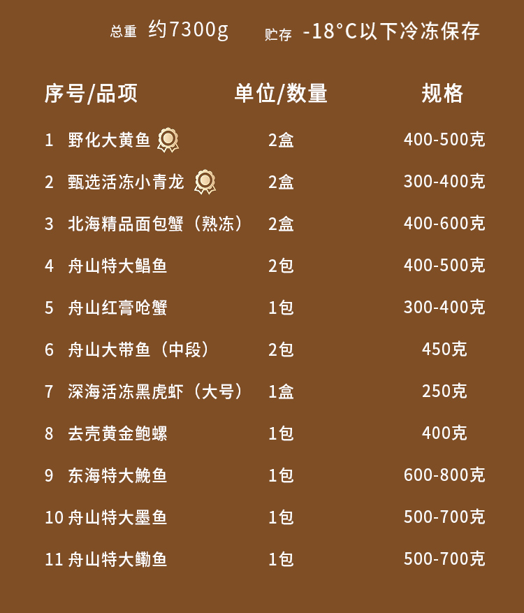 | 使用方法: | 线上预订或门店提货 | 礼盒重量: | 6500g |