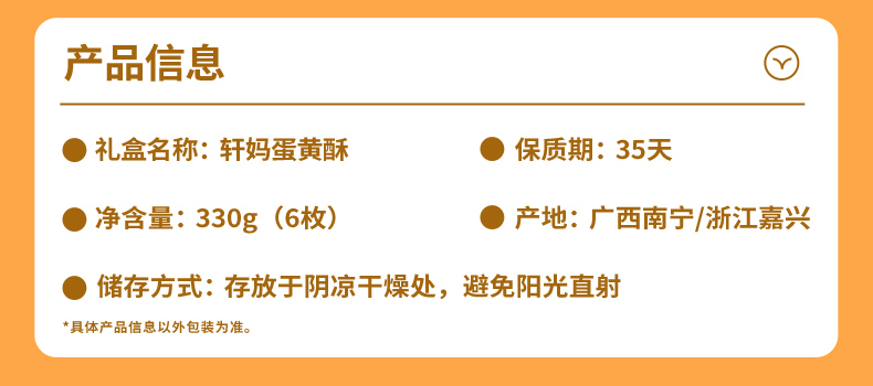 | 产品名称 : | 【经典款】轩妈家蛋黄酥6枚装礼盒 | 产品品牌 : | |