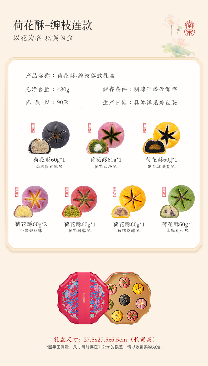 | 产品名称 : | 南宋胡记荷花酥缠枝莲款糕点礼盒 | 产品品牌 : | |