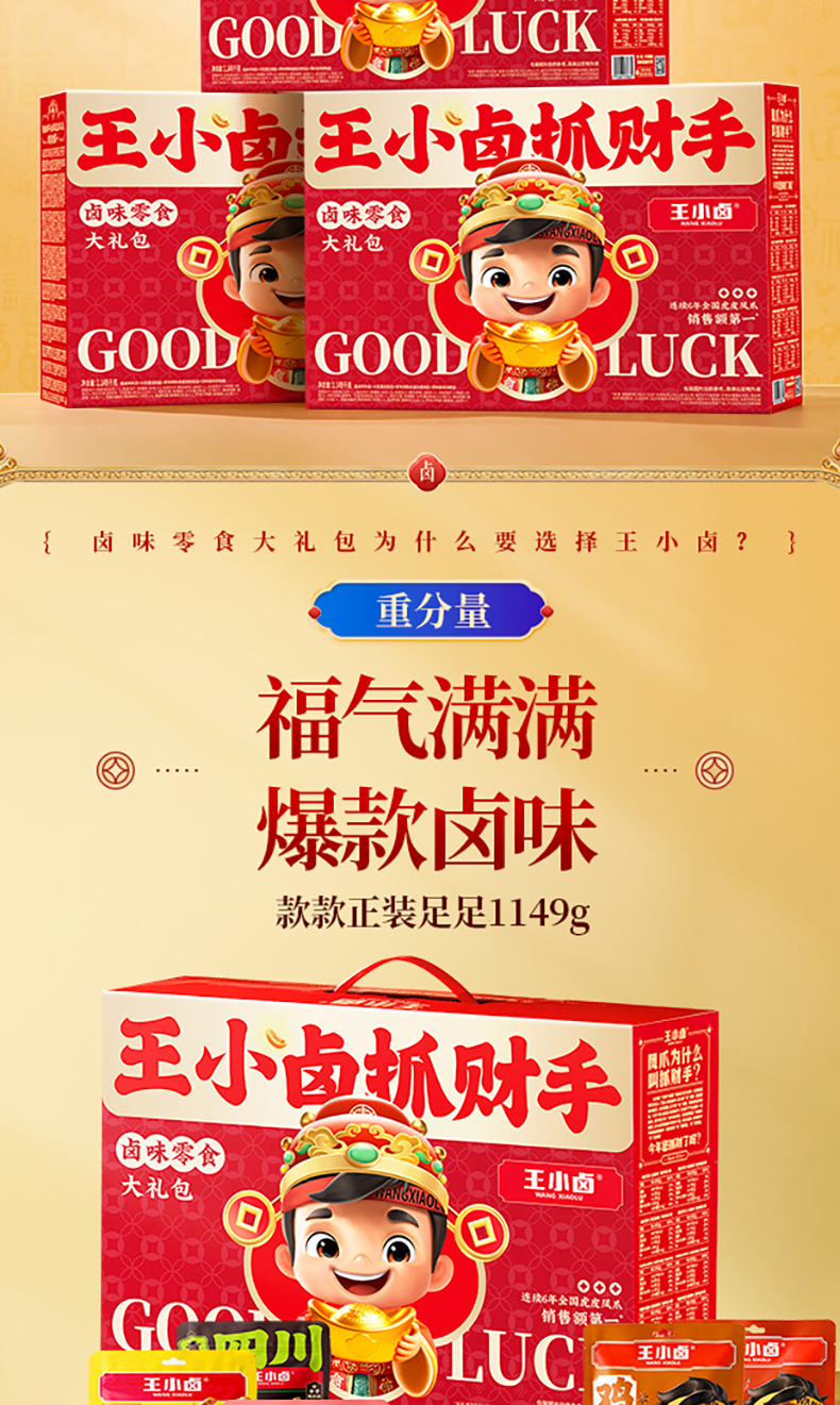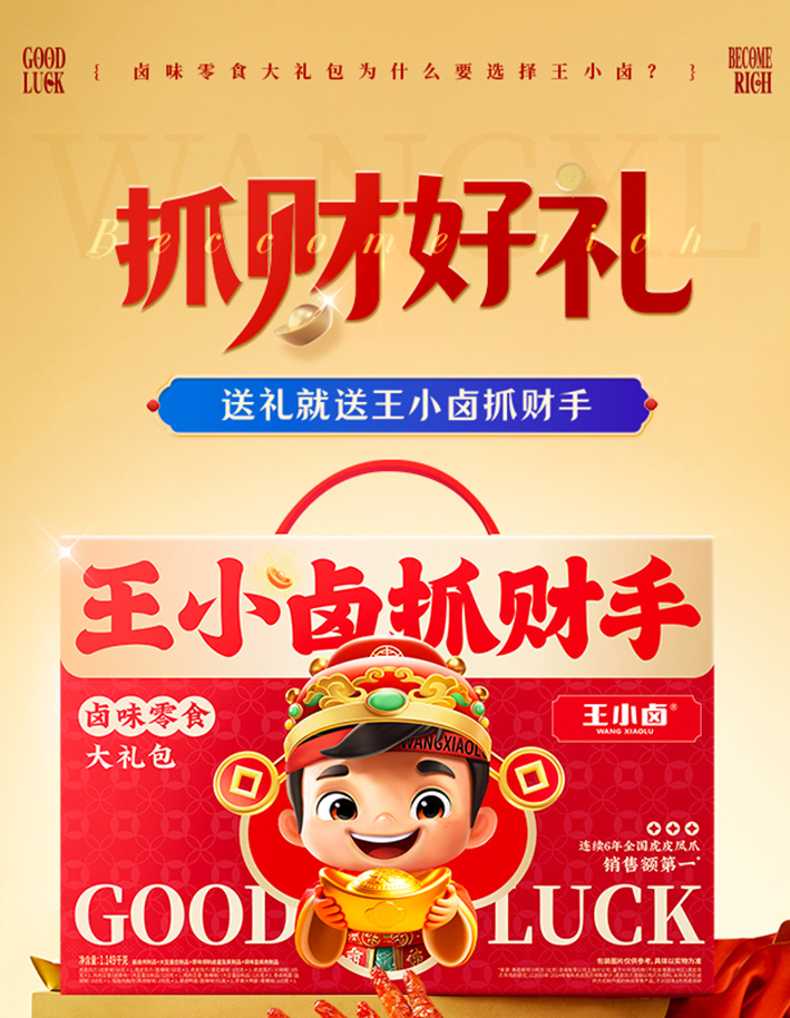 | 产品名称 : | 王小卤2026抓财手B款1149g年货礼盒 | 产品品牌 : | |