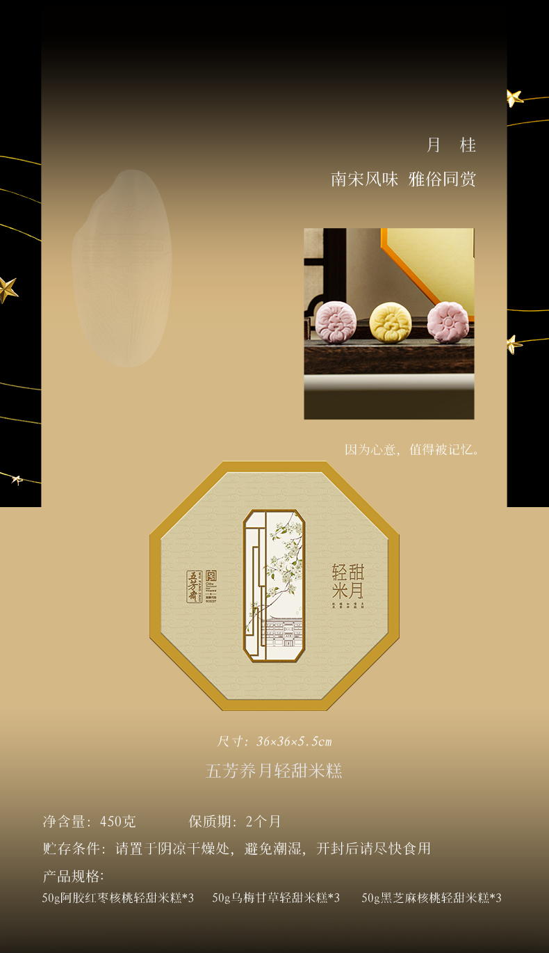 | 产品名称 : | 五芳斋五芳月桂轻甜糯月糕点礼盒 | 产品品牌 : | 五芳斋 |