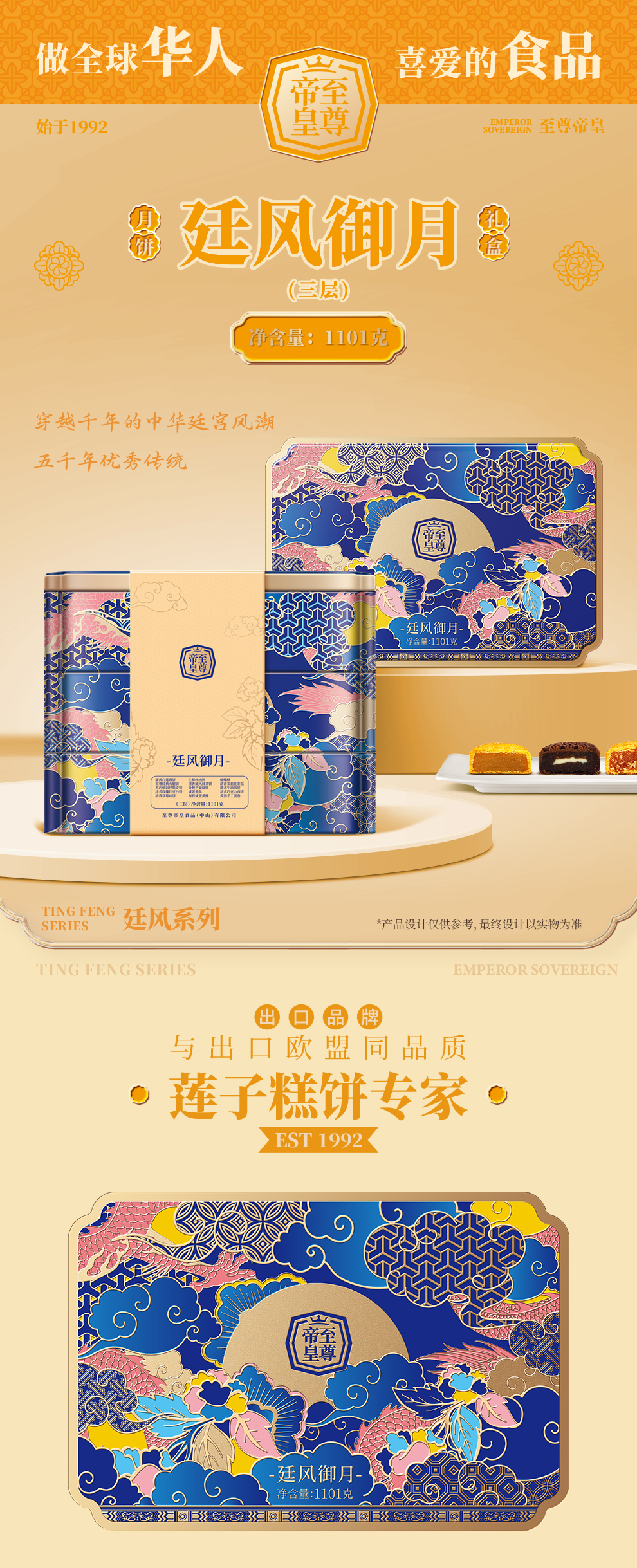 | 产品名称 : | 至尊帝皇月饼廷风御月三层铁盒 | 产品品牌 : | 至尊帝皇 |