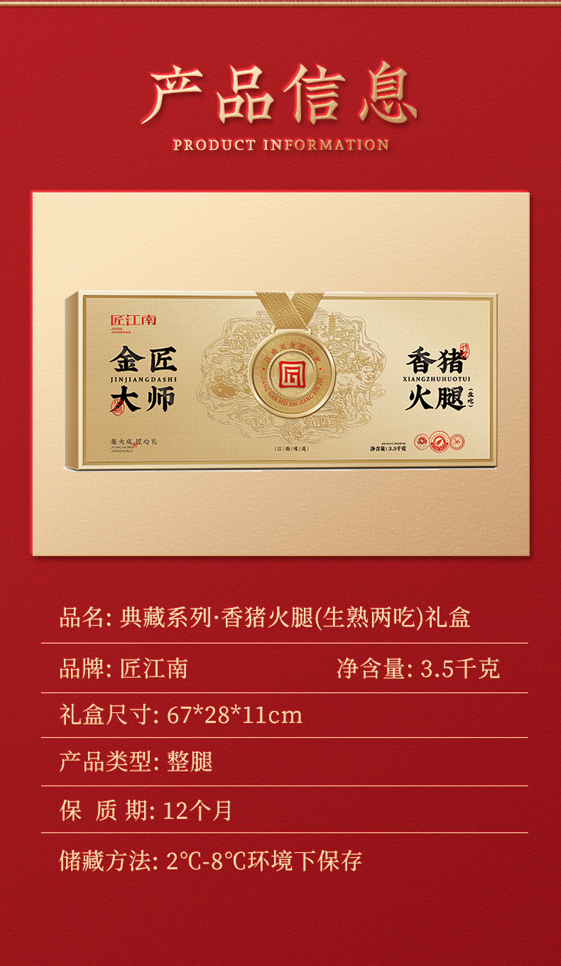 | 产品名称 : | 匠江南3.5kg生吃火腿-金匠大师火腿礼盒 | 产品品牌 : | |