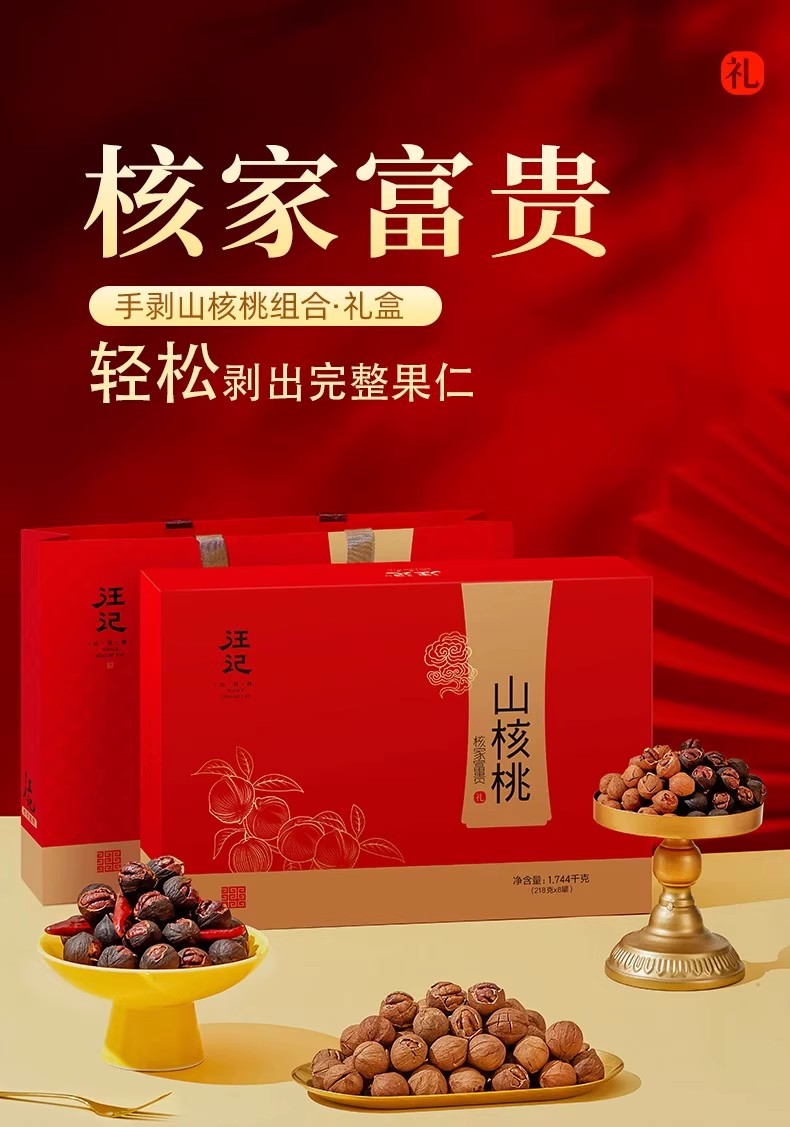 | 产品名称 : | 汪记山核桃核家富贵礼盒临安手剥山核桃礼盒 | 产品品牌 : | 汪记 |