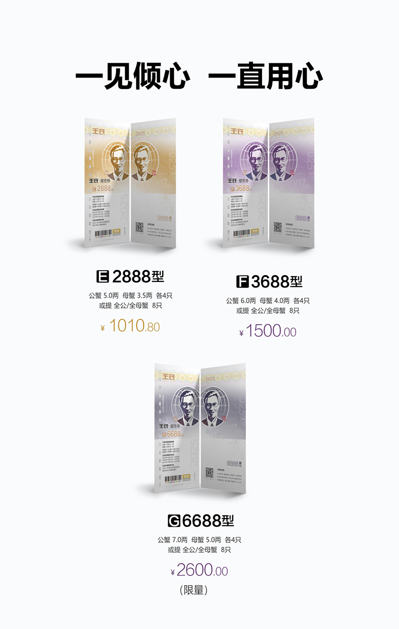 | 产品名称 : | 【礼券】王氏大闸蟹礼券礼品卡螃蟹券 公7.0两 母5.0两各4只6688型 | 产品品牌 : | 王氏 |