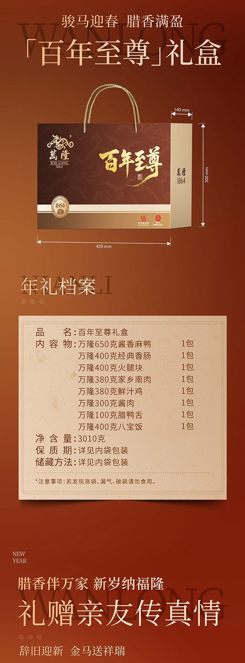 | 产品名称 : | 万隆年货百年至尊年货礼盒万隆酱鸭团购 | 产品品牌 : | 万隆 |