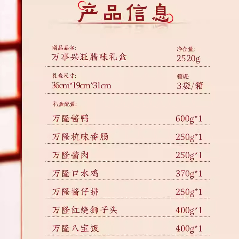 | 产品名称 : | 万隆年货萬事兴旺礼盒 | 产品品牌 : | 万隆 |