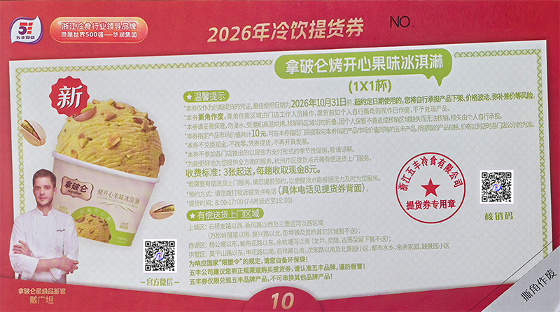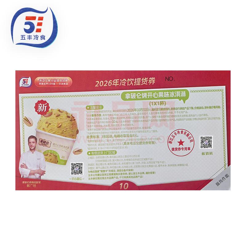 | 产品名称 : | 五丰冷饮券10元五丰汤圆券水饺券五丰提货券 | 产品品牌 : | 五丰冷饮 |