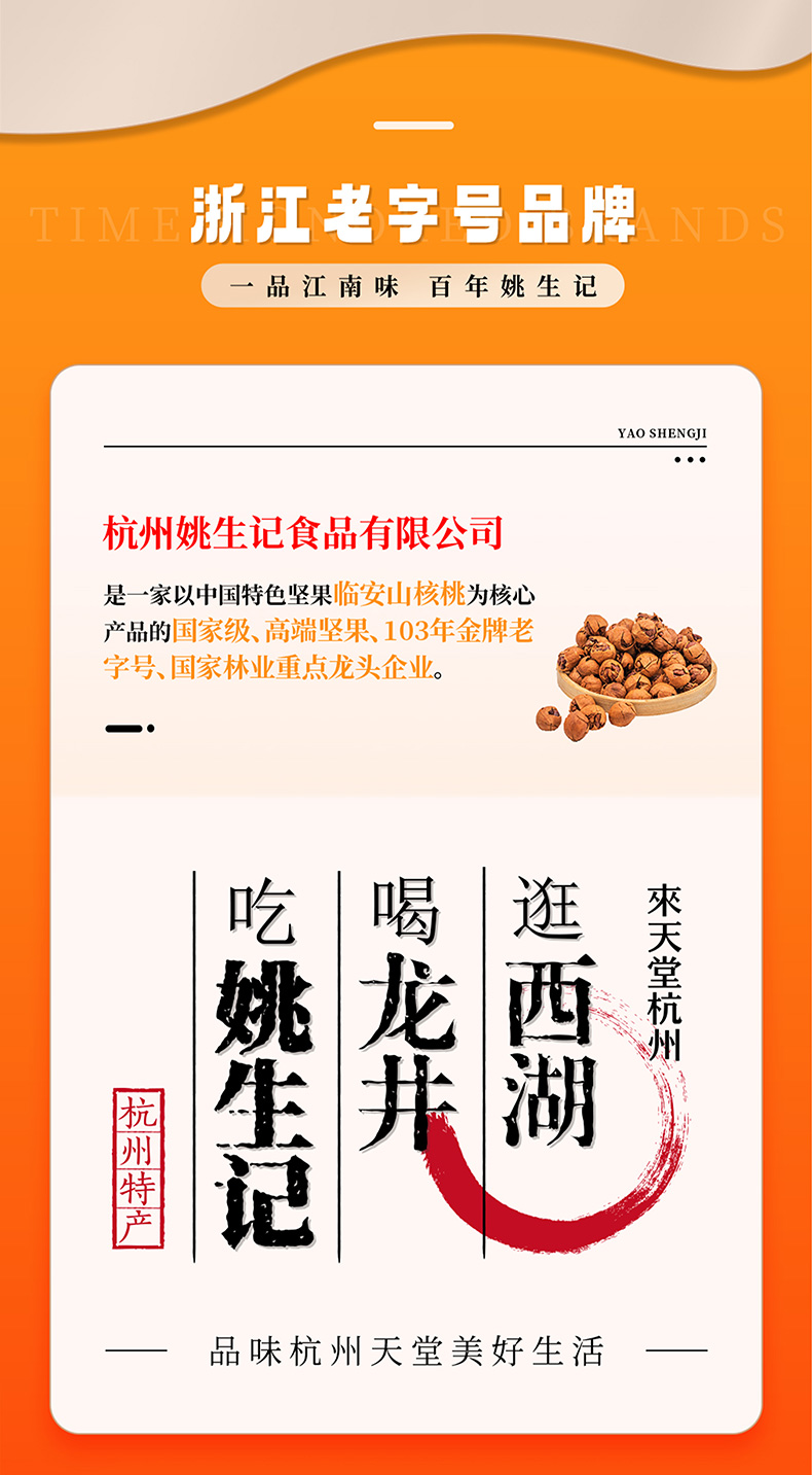杭州姚生记食品有限公司成立于1998年,公司总部位于杭州市滨江区滨安路1190号,注册资本2000万元,是一家集原料基地建设、研发生产加工、多渠道营销于一体的垂直类综合运营商。