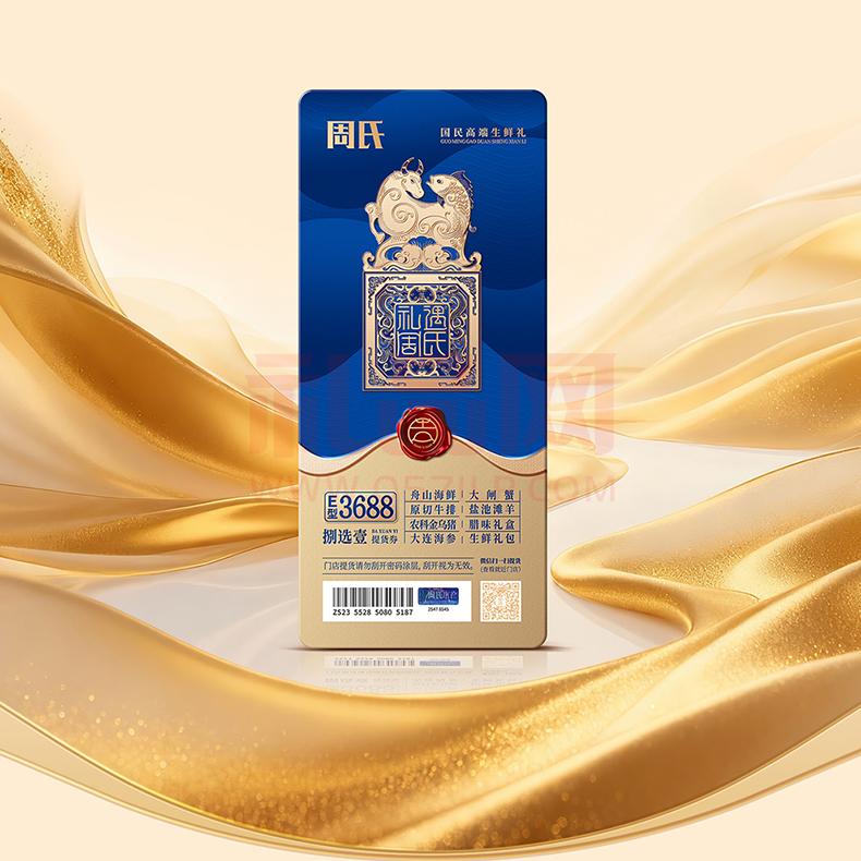 | 产品名称 : | 周氏海鲜3688型捌选壹礼券套餐 | 产品品牌 : | 周氏水产 |