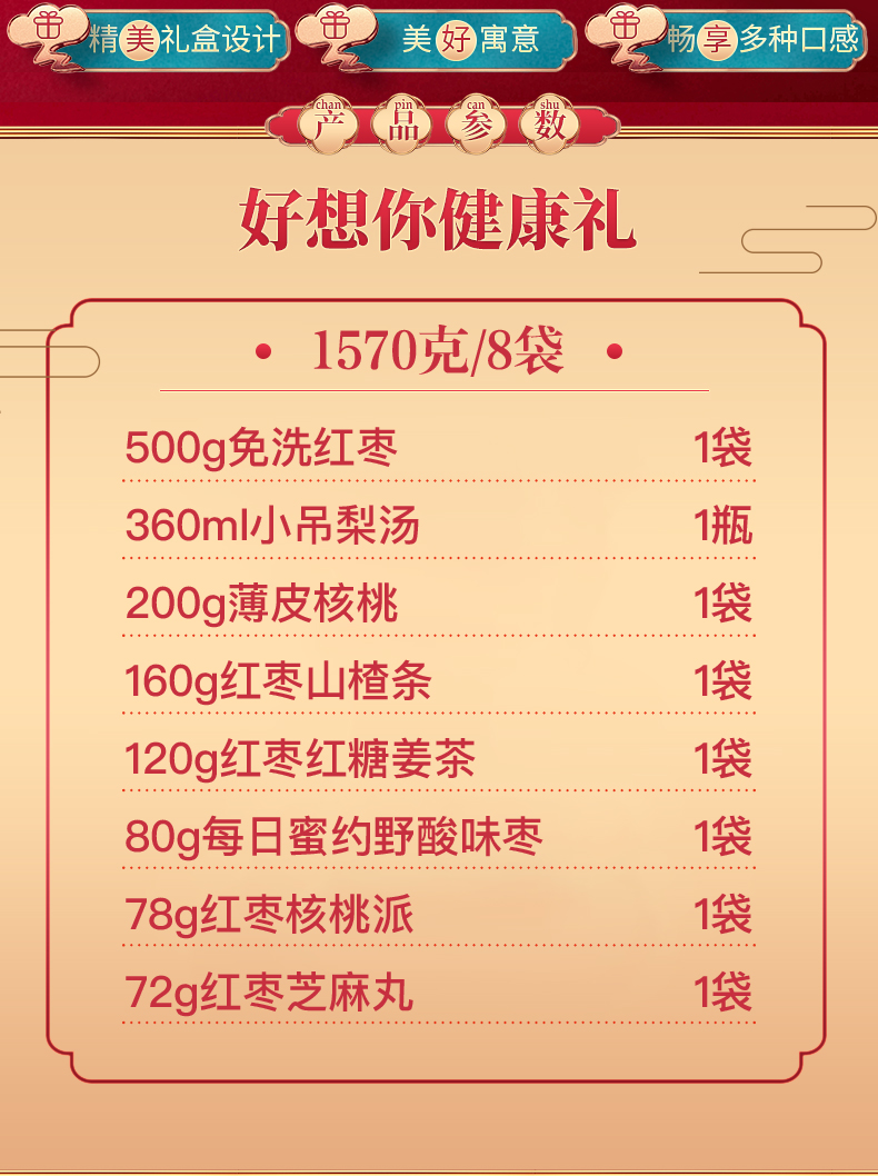 | 产品名称 : | 好想你健康礼红枣礼盒1570g | 产品品牌 : | |