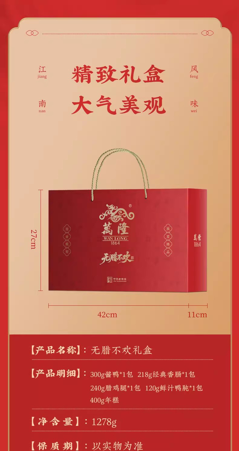 | 产品名称 : | 万隆年货无腊不欢礼盒 | 产品品牌 : | 万隆 |