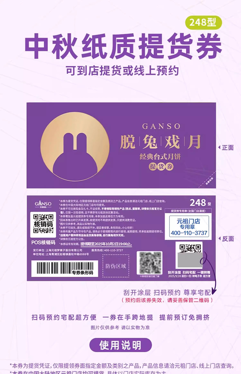 | 产品名称 : | 元祖月饼脱兔戏月提货券248型 | 产品品牌 : | |