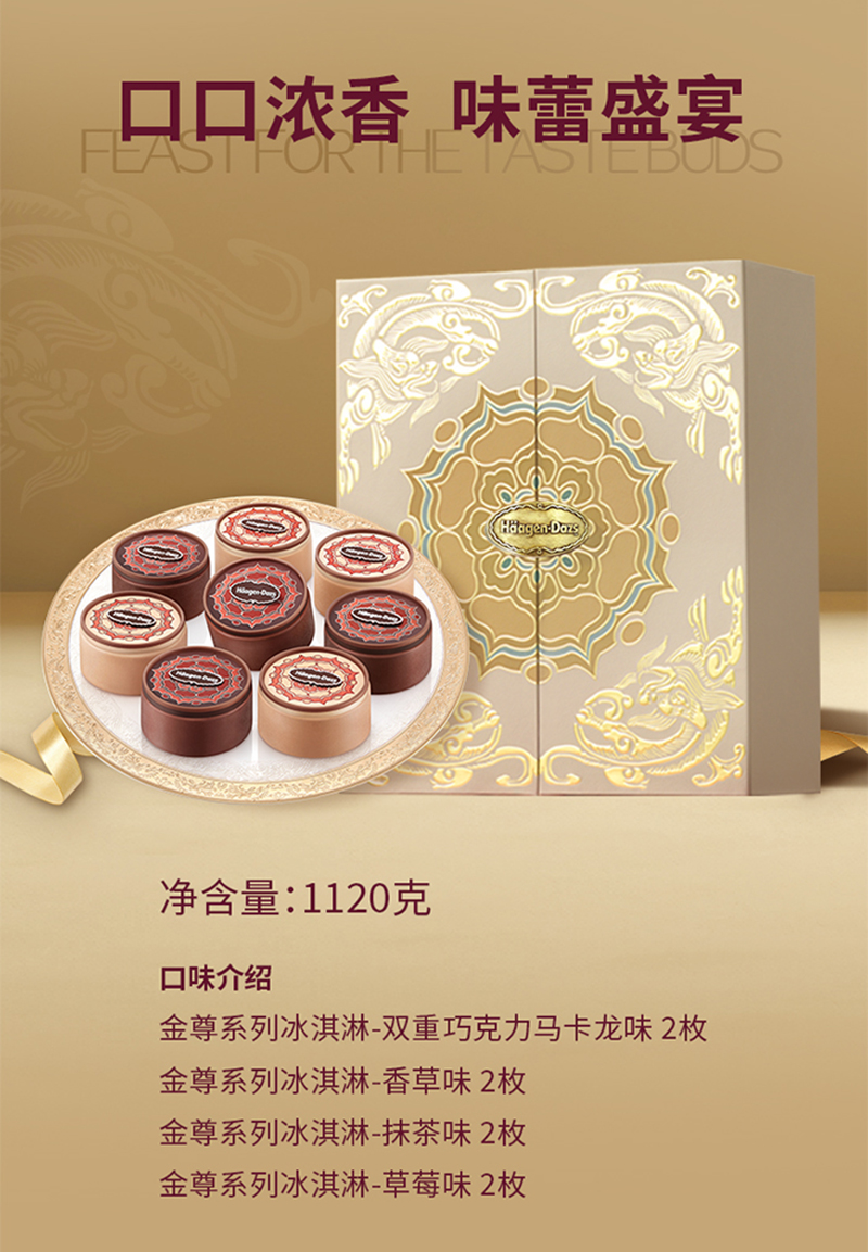 | 产品名称 : | 哈根达斯冰淇淋月饼金尊礼盒提货券 | 产品品牌 : | 哈根达斯 |