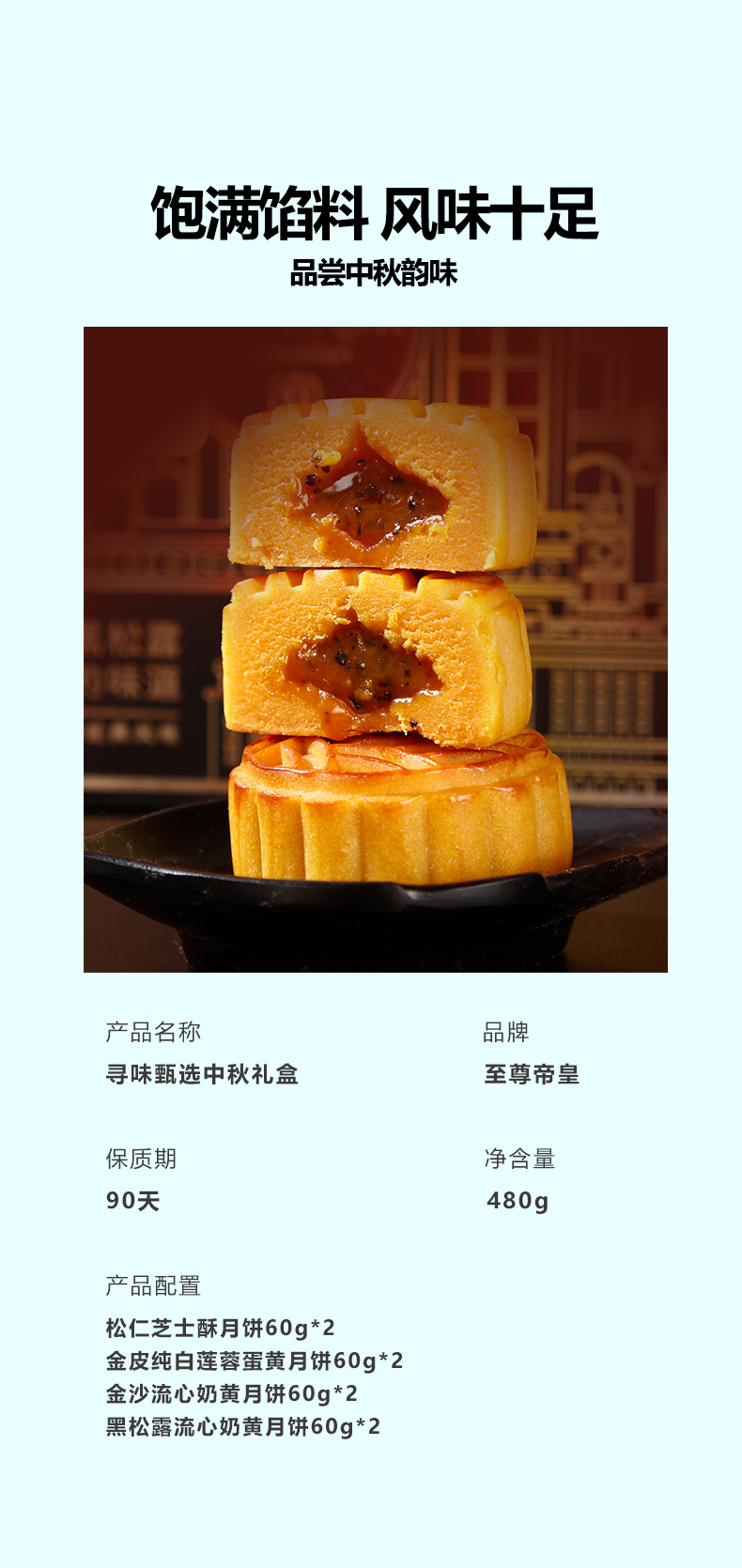 | 产品名称 : | 至尊帝寻味臻选流心奶黄月饼礼盒 | 产品品牌 : | 至尊帝皇 |