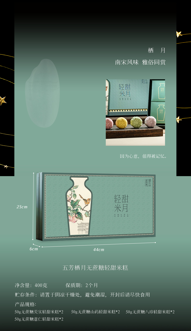 | 产品名称 : | 五芳斋五芳栖月无蔗糖轻甜米糕礼盒 | 产品品牌 : | |