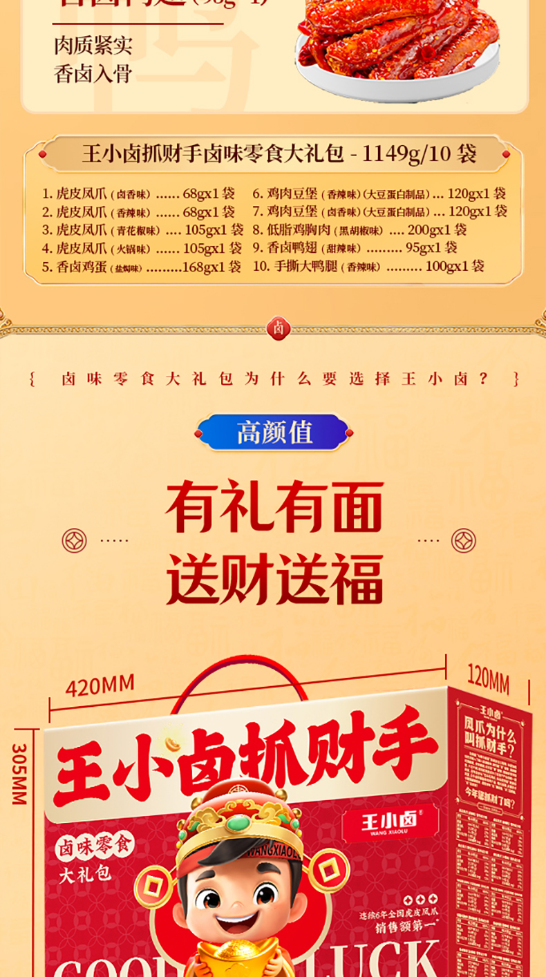 | 产品名称 : | 王小卤2026抓财手B款1149g年货礼盒 | 产品品牌 : | |