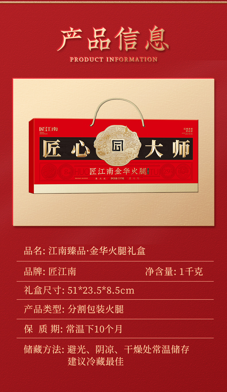 | 产品名称 : | 匠江南火腿-江南臻品礼盒1kg分割 | 产品品牌 : | |