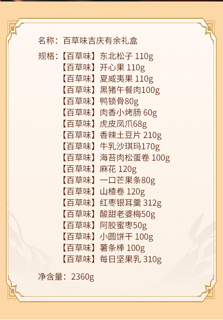 | 产品名称 : | 百草味吉庆有余年货礼盒 | 产品品牌 : | |