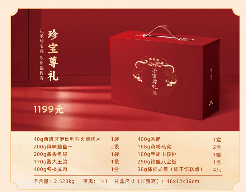 | 产品名称 : | 楼外楼珍宝尊礼年货礼盒 | 产品品牌 : | 楼外楼 |