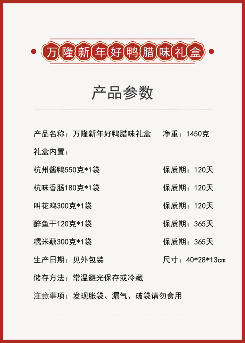 | 产品名称 : | 万隆腊味新年好鸭年货礼盒 | 产品品牌 : | 万隆 |